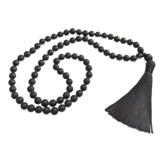 Onyx náhrdelník 80 + 1 kuliček matný meditační šperk, přírodní kámen, vázaný střapec, korálek 8 mm