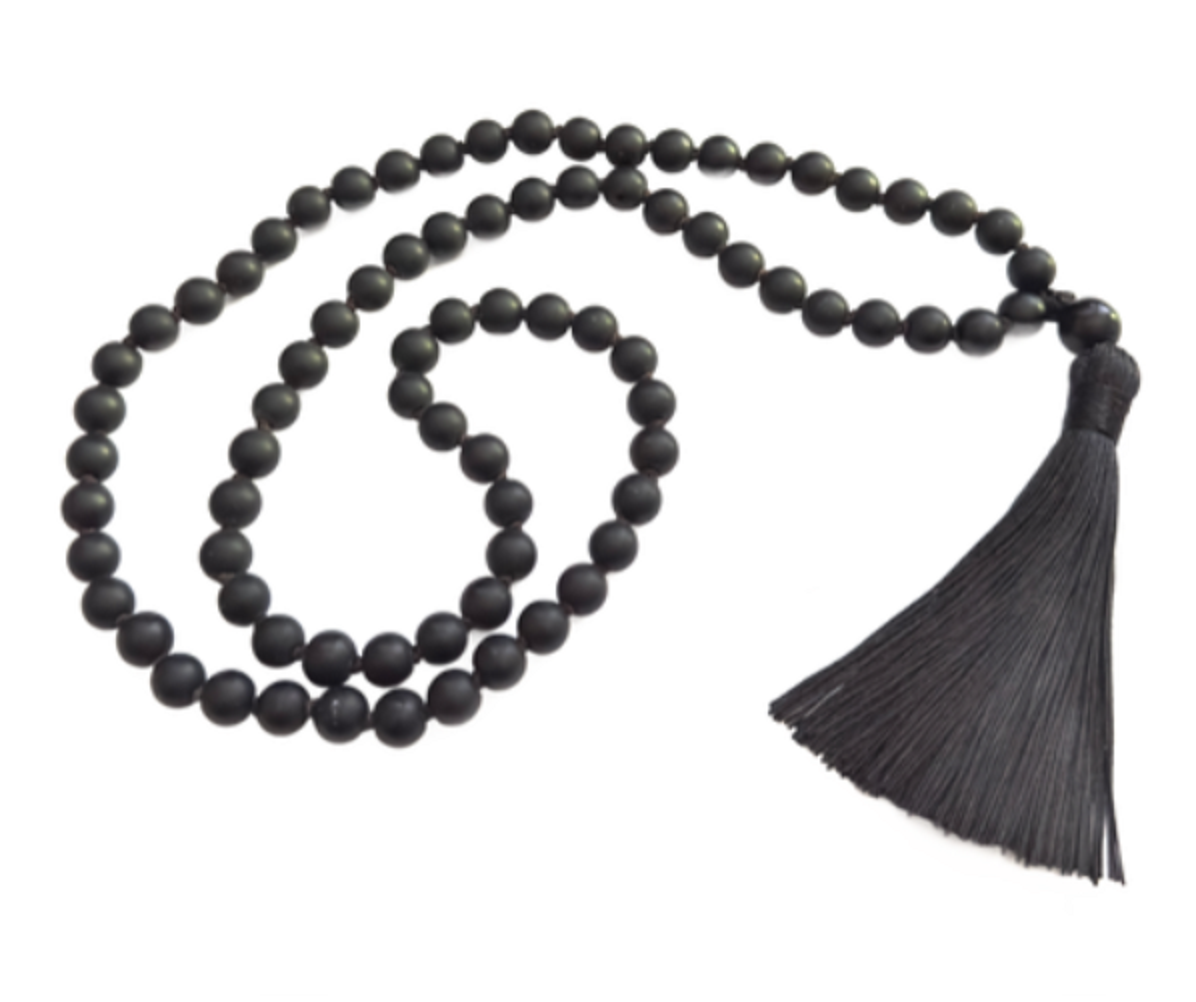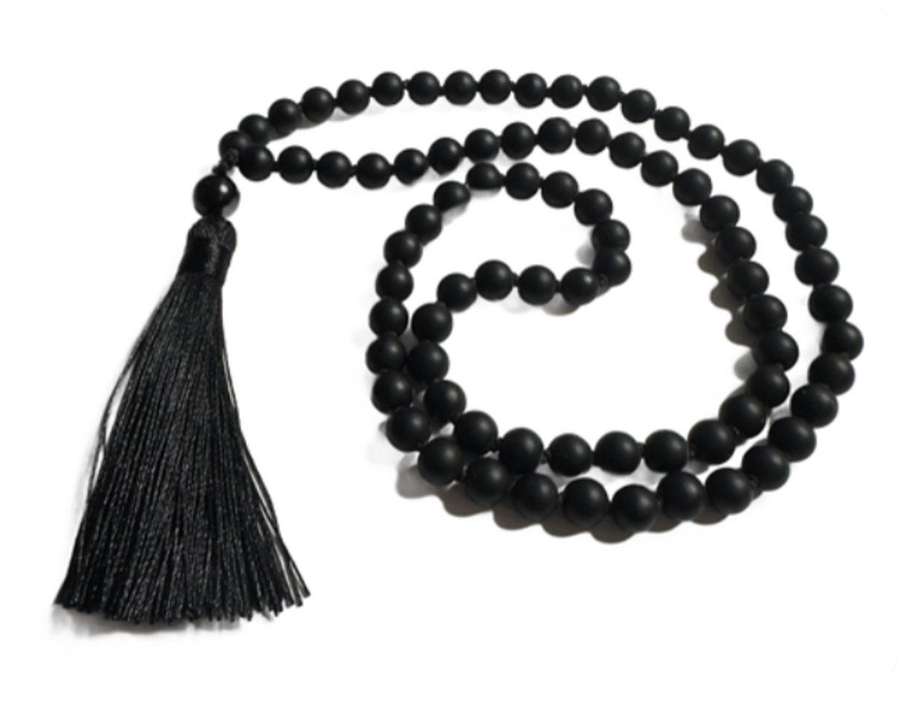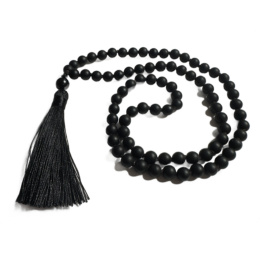 Onyx náhrdelník 80 + 1 kuliček matný meditační šperk, přírodní kámen, vázaný střapec, korálek 8 mm