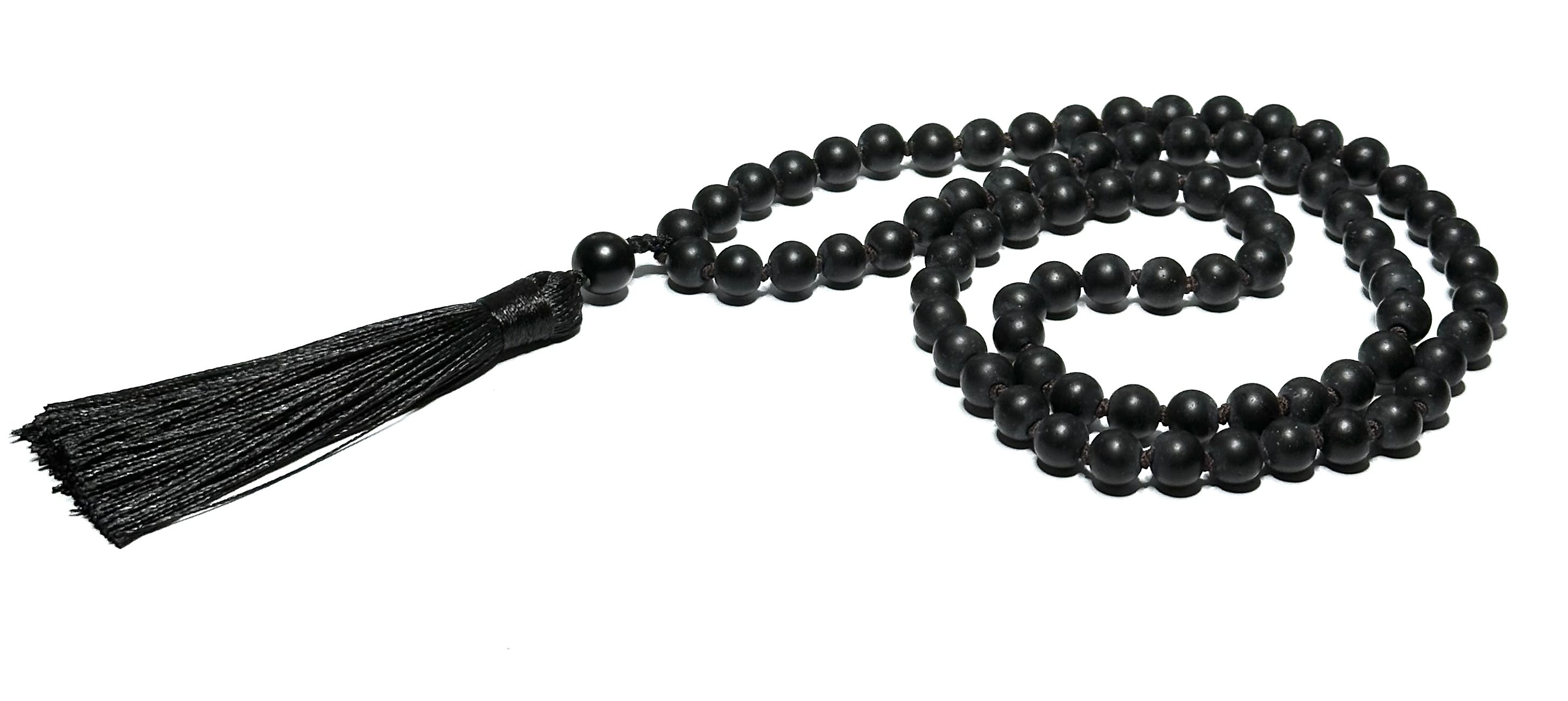 Onyx náhrdelník 80 + 1 kuliček matný meditační šperk, přírodní kámen, vázaný střapec, korálek 8 mm