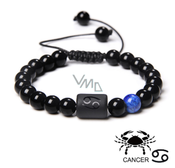 Onyx Rak znamení zvěrokruhu, náramek přírodní kámen, kulička 8mm / nastavitelná velikost, kámen životní síly