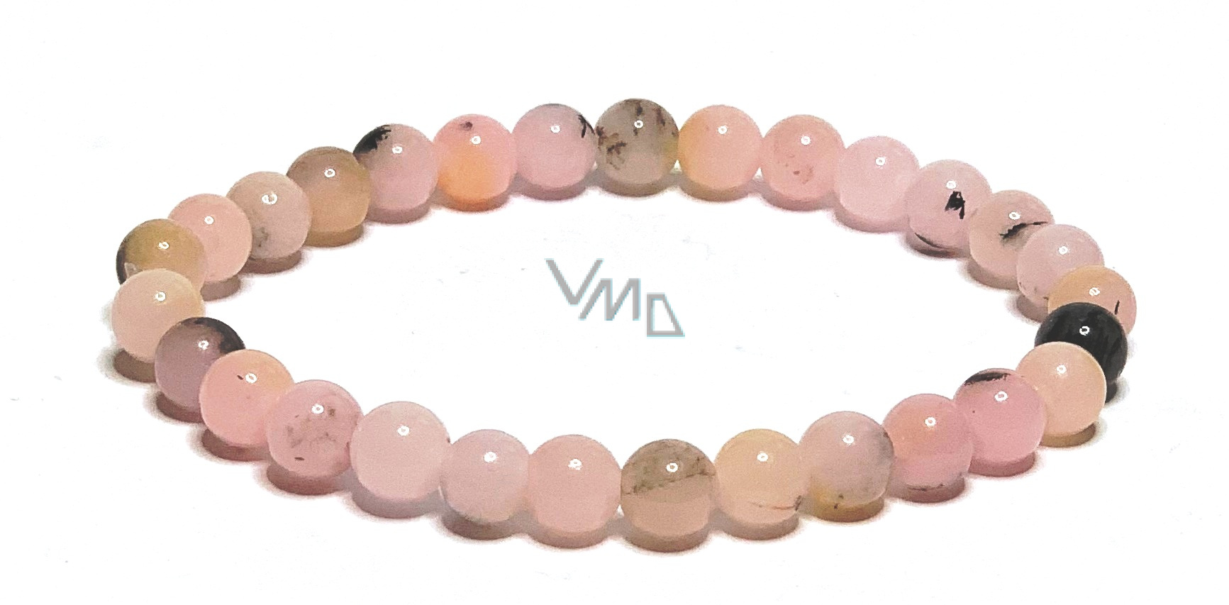 Opál růžový náramek elastický přírodní kámen, kulička 6 mm / 16 - 17 cm, kámen královny, přitažlivosti, ženské intuice a krásy