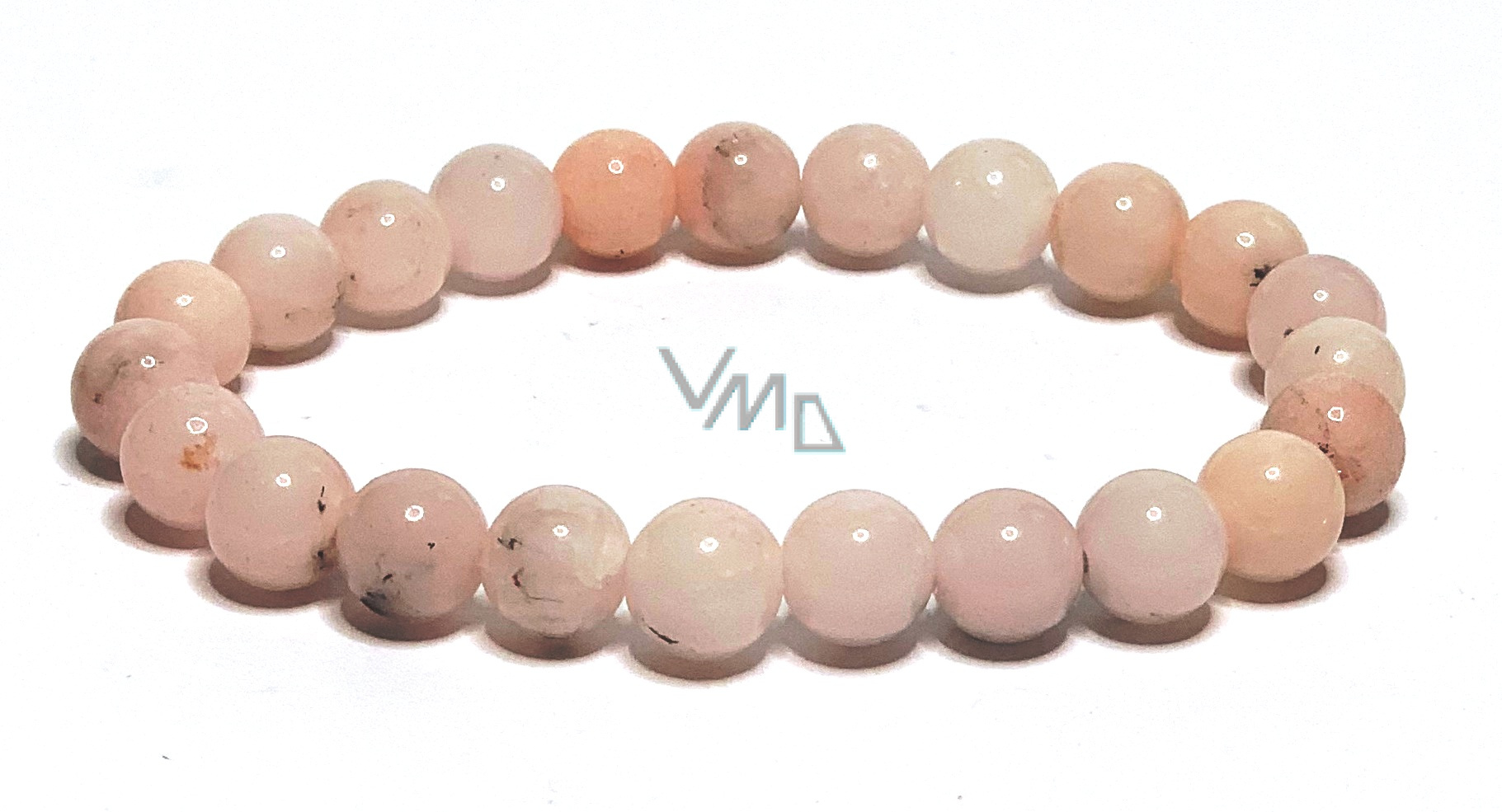 Opál růžový náramek elastický přírodní kámen, kulička 8 mm / 16 - 17 cm, kámen královny, přitažlivosti, ženské intuice a krásy