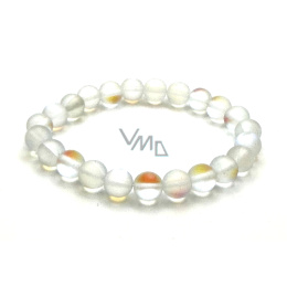 Opalit bílý matný náramek elastický, syntetický kámen kulička 8 mm / 16 - 17 cm, kámen přání a naděje