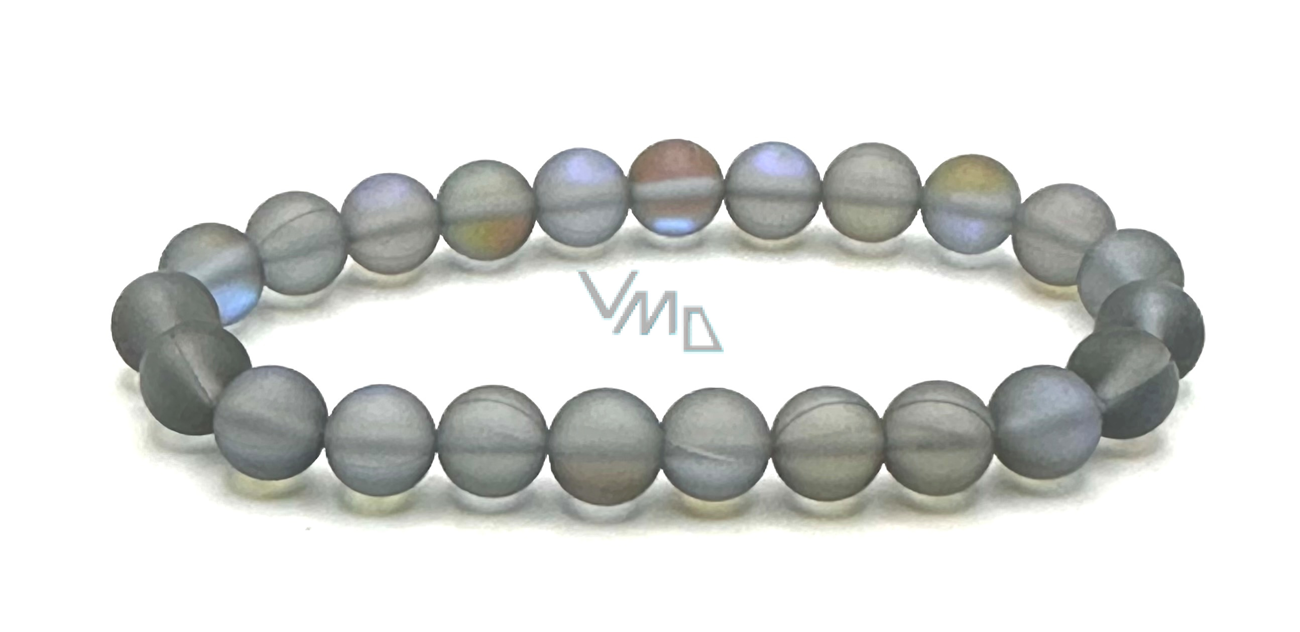 Opalit labradorit matný náramek elastický, syntetický kámen kulička 8 mm / 16 - 17 cm, kámen přání a naděje
