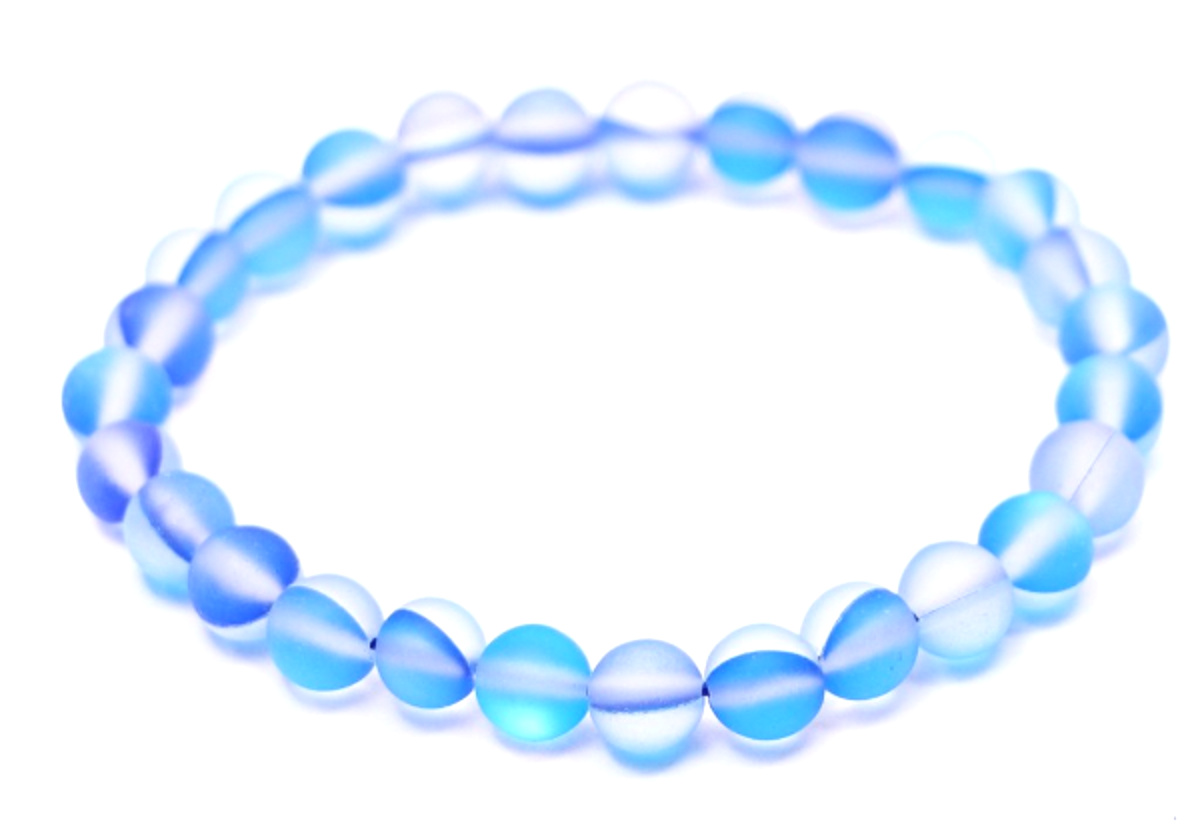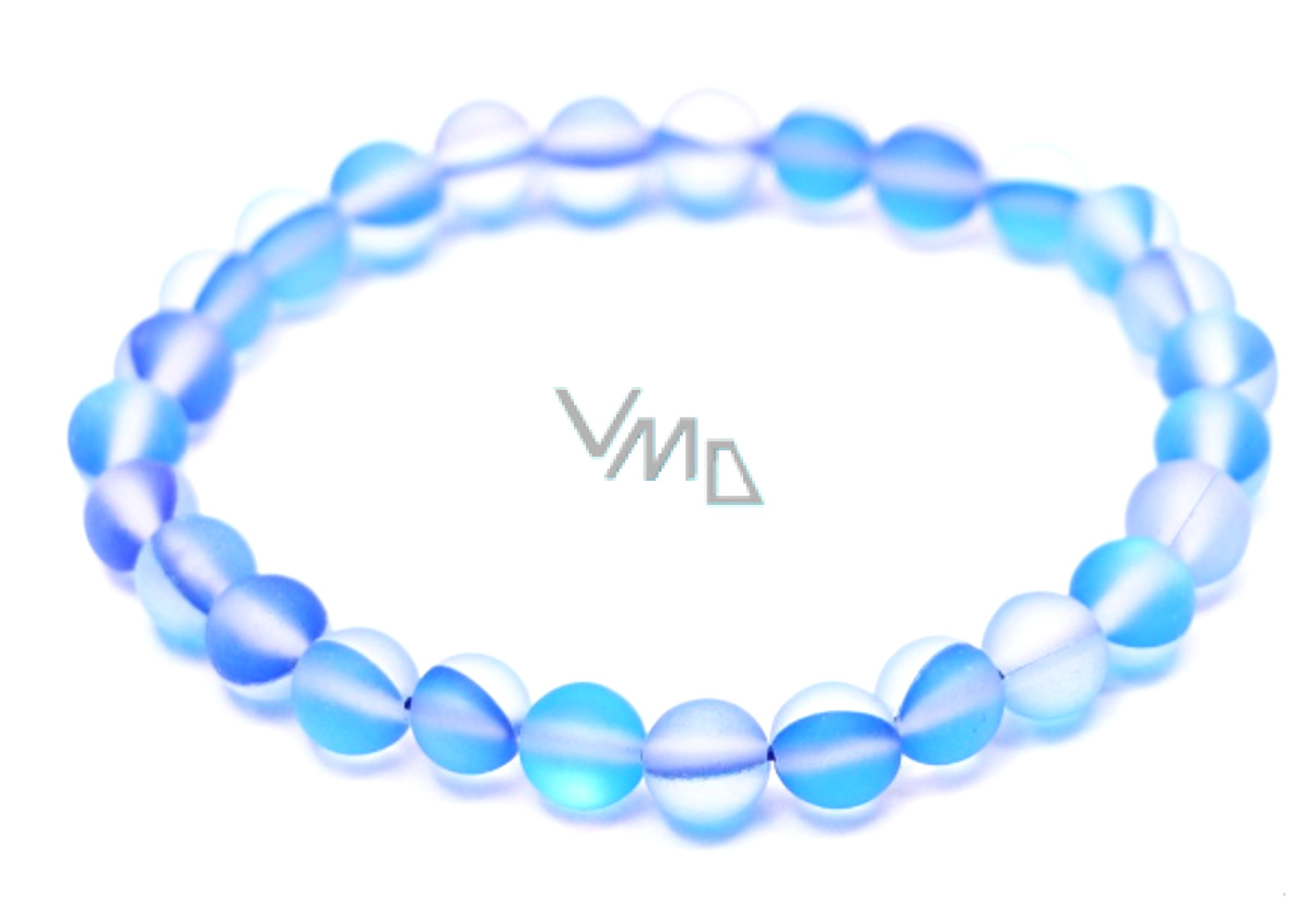 Opalit modrý matný náramek elastický, syntetický kámen kulička 6 mm / 16 cm, pro děti, kámen přání a naděje