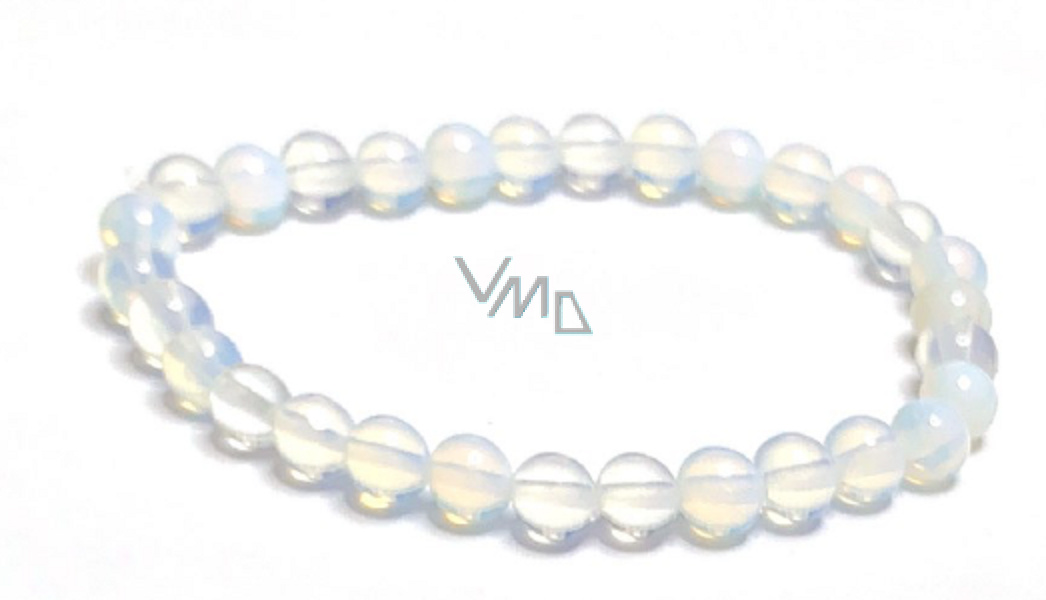 Opalit náramek elastický, syntetický kámen kulička 6 mm / 16 - 17 cm, kámen přání a naděje