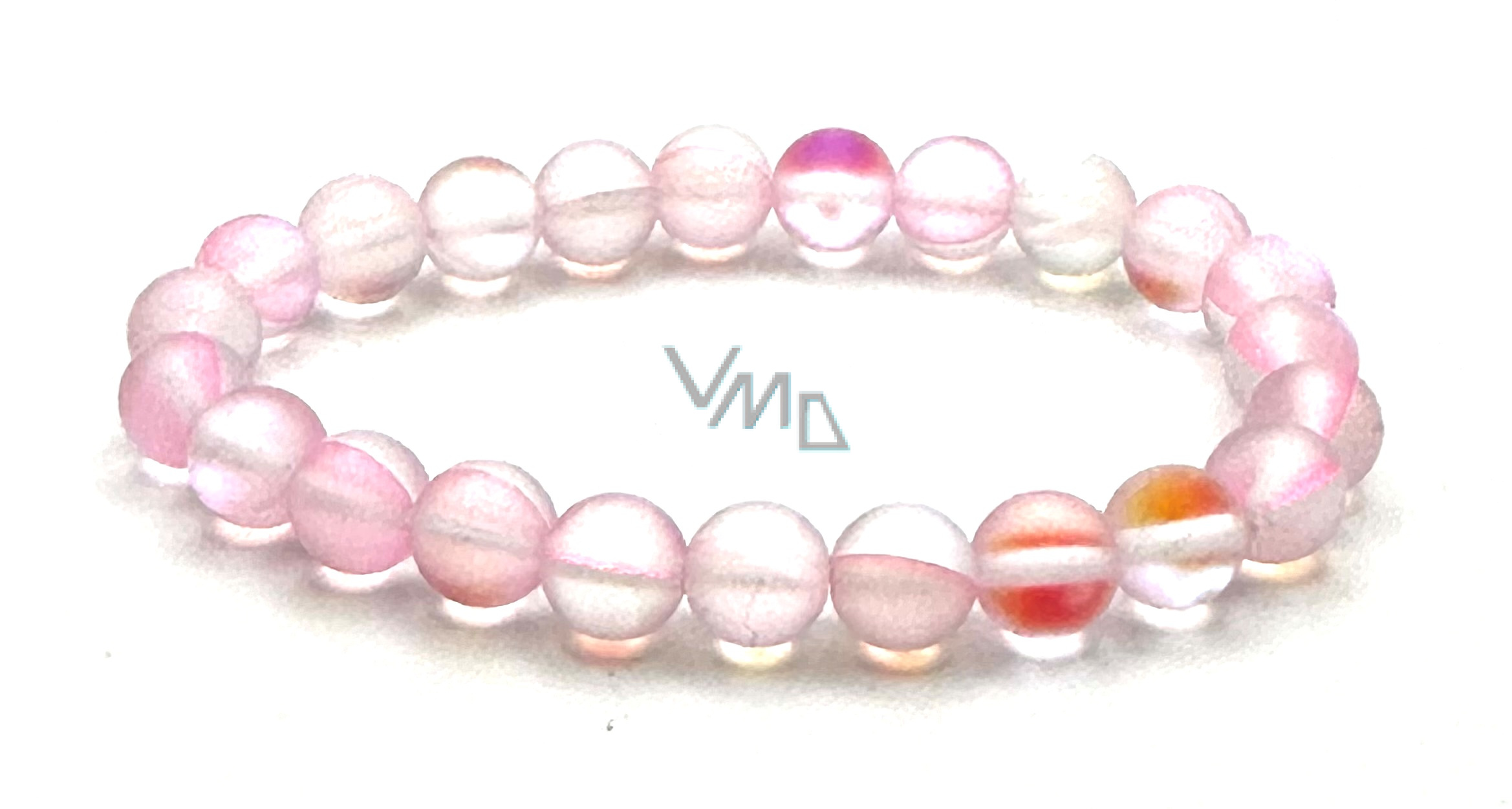 Opalit růžový matný náramek elastický, syntetický kámen kulička 8 mm / 16 - 17 cm, kámen přání a naděje