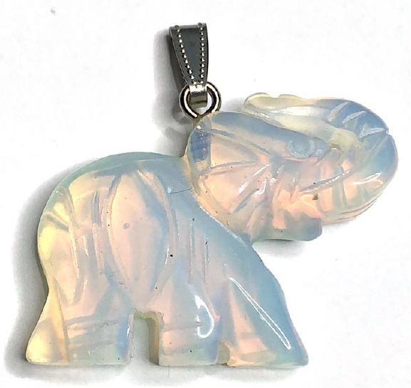 Atraktivní přívěšek ze syntetického Měsíčního kamene. Figurka slona pro štěstí je ručně broušená.