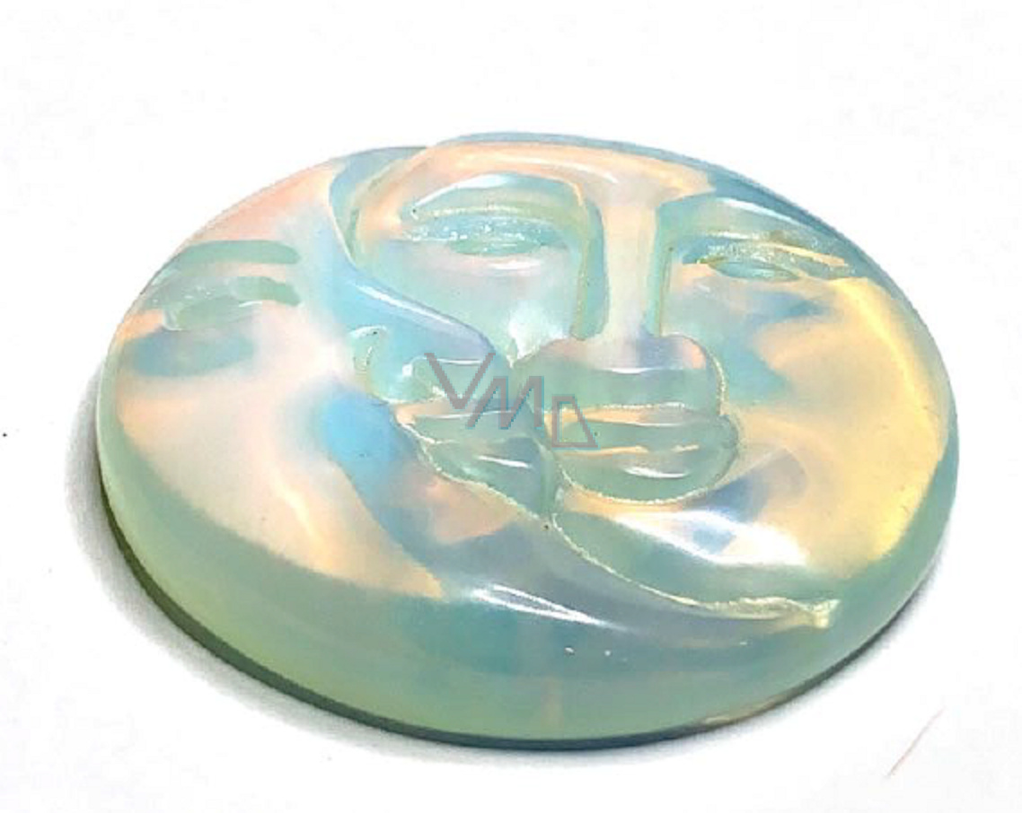Opalit tvář slunce a měsíc ručně vyřezávaný syntetický kámen 5 cm, kámen přání a naděje