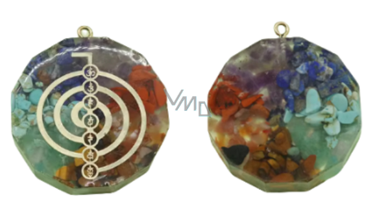 - Přívěsek Orgonit s kameny, zalitými v průhledném akrylátu.