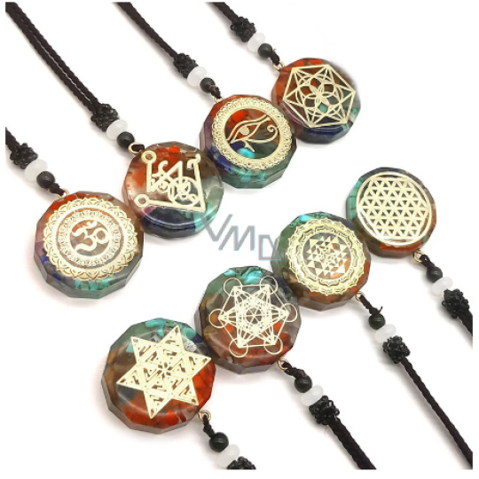 Orgonit amulet, Hornovo oko, generátor energie, přírodní kámen (7 čaker) + epoxidová pryskyřice + lano 22 g