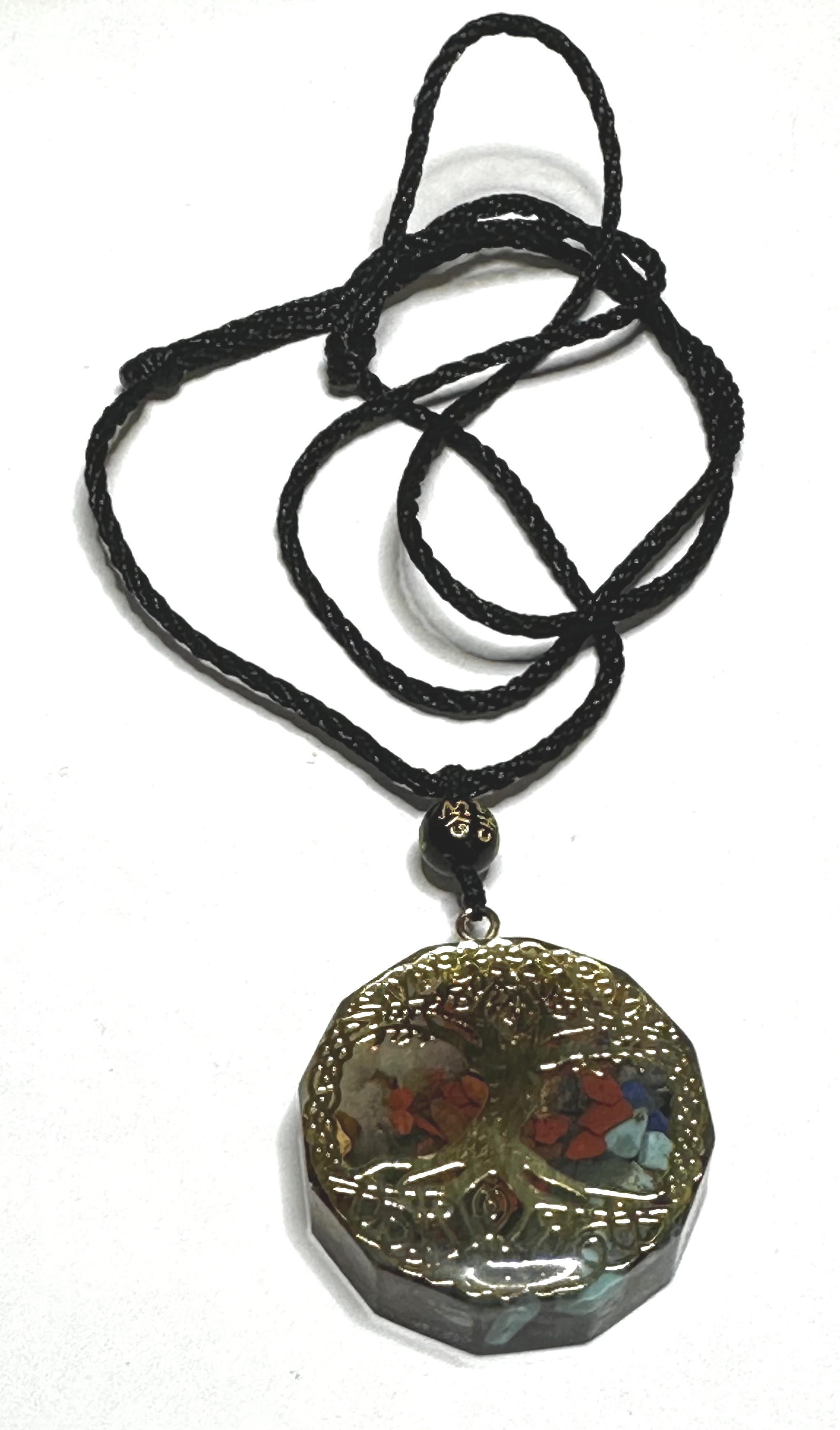 Orgonit amulet, Strom života, generátor energie, přírodní kámen (7 čaker) + epoxidová pryskyřice + lano 22 g