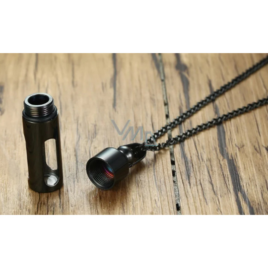 Pamětní, pietní urnový přívěsek, Dutá trubice, voděodolná, nerezová ocel, černá 13 mm x 49 mm + 60 cm řetízek