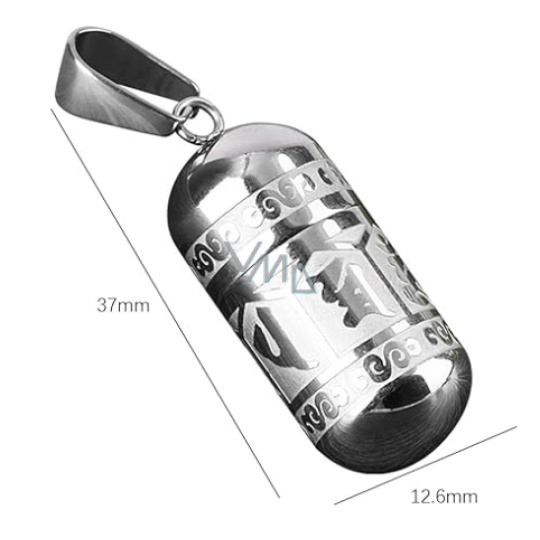 Pamětní, pietní urnový přívěsek, Om Man iMantra Buddhistický voděodolný, nerezová ocel 28 x 13 mm + řetízek
