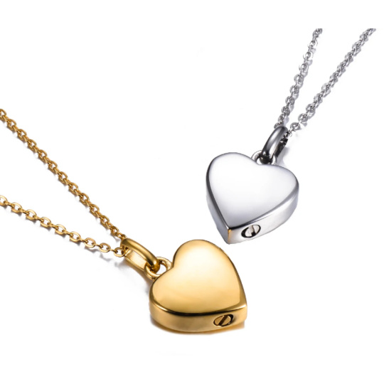 Pamětní, pietní urnový přívěsek, Srdce lesklé, voděodolné, nerezová ocel 19 x 29 mm + řetízek 50 cm