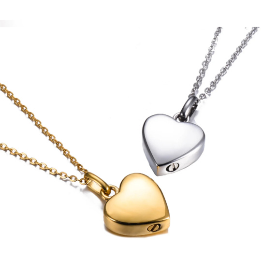 Pamětní, pietní urnový přívěsek, Srdce lesklé zlaté, voděodolné, nerezová ocel 19 x 29 mm + řetízek 50 cm