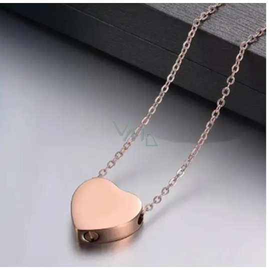 Pamětní, pietní urnový přívěsek, Srdce růžové zlato voděodolné, nerezová ocel