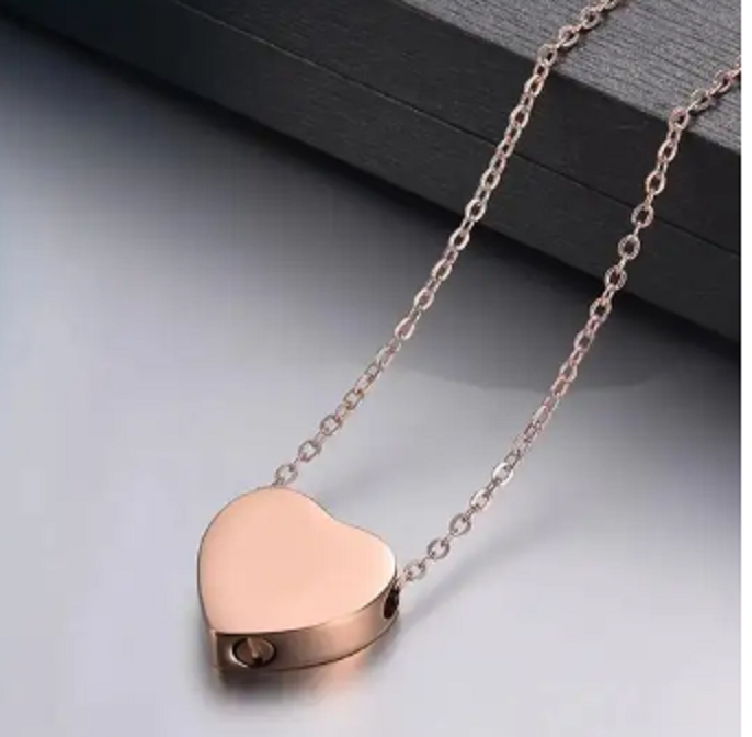 Pamětní, pietní urnový přívěsek, Srdce růžové zlato voděodolné, nerezová ocel