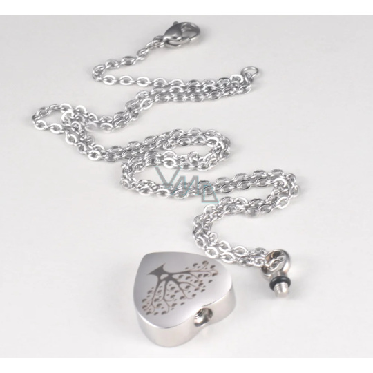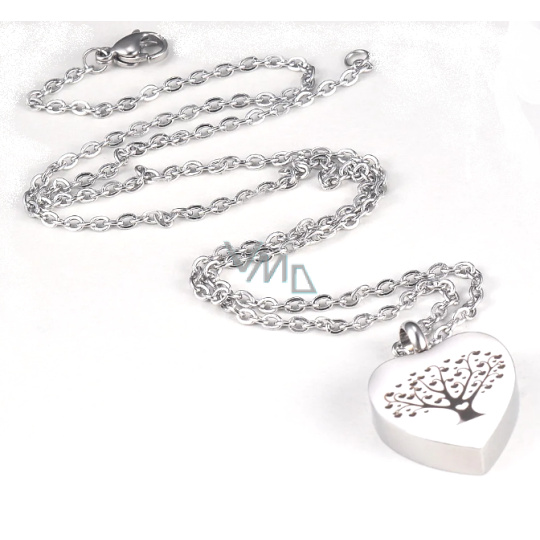 Pamětní, pietní urnový přívěsek, Srdce, strom života voděodolné, nerezová ocel 20 x 26 mm