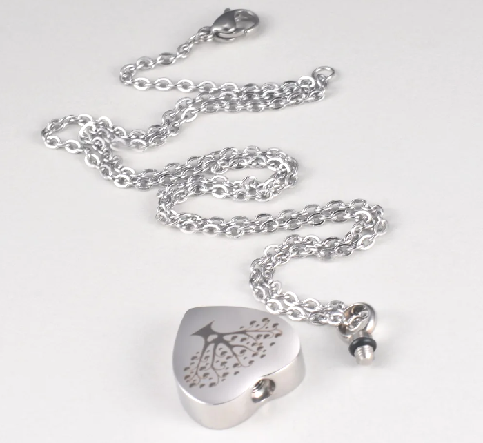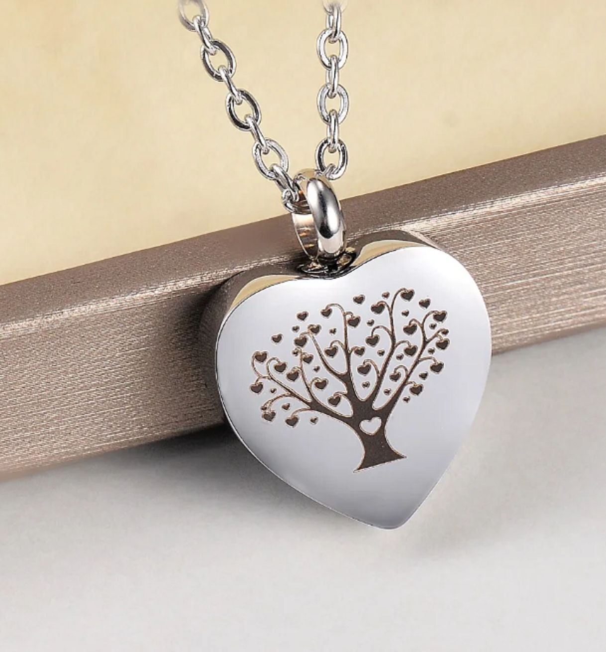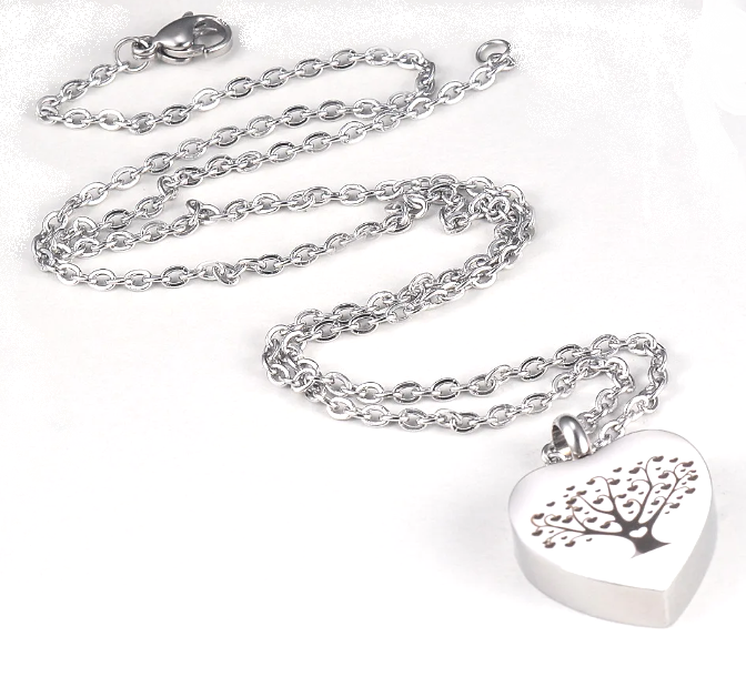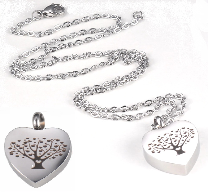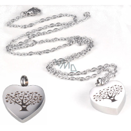 Pamětní, pietní urnový přívěsek, Srdce, strom života voděodolné, nerezová ocel 20 x 26 mm