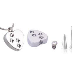 Pamětní, pietní urnový přívěsek, Srdce tlapky, nerezová ocel 20 x 25 mm