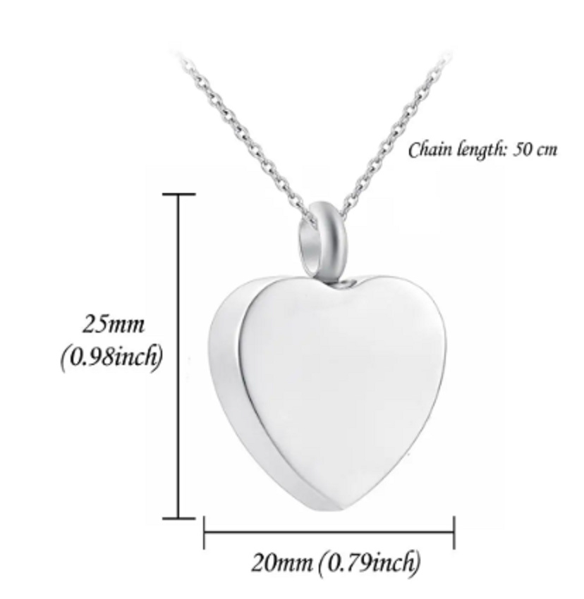 Pamětní, pietní urnový přívěsek, Srdce voděodolné, nerezová ocel 20 x 25 mm + řetízek 50 cm