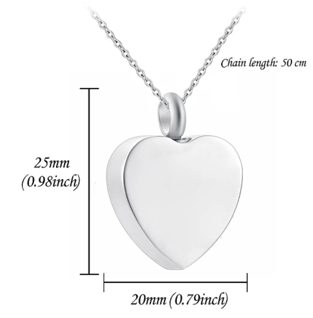 Pečlivé zpracovaný přívěsek z nerezové oceli nevybledne, neznečistí, nezrezne ani neušpiní! Bezpečný šroub se závitem udržuje obsah v bezpečí i při každodenním nošení. Navíc je i voděodolný. Ideální pro popel, vlasy nebo sušené květiny, je to zvláštním způsobem, jak uctít zesnulé. K přívěsku dostanete plnící sadu, s miniaturním trychtýřem a robustním ocelovým kolíčkem, čímž můžete pevně a snadno naplnit srdce. Tento pamětní náhrdelník vám přinese útěchu a odvahu.