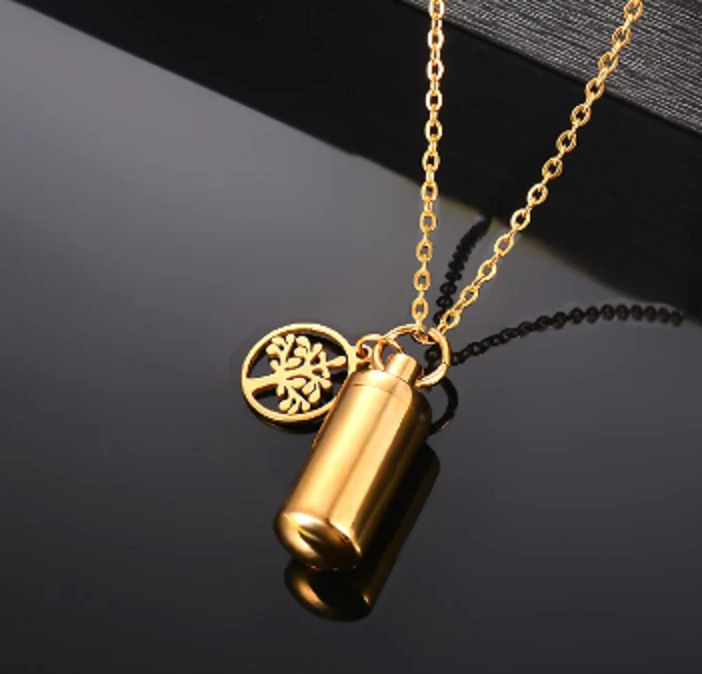 Popis Pamětní, pietní urnový přívěsek, strom života zlatý voděodolný, nerezová ocel 10 x 28 mm
