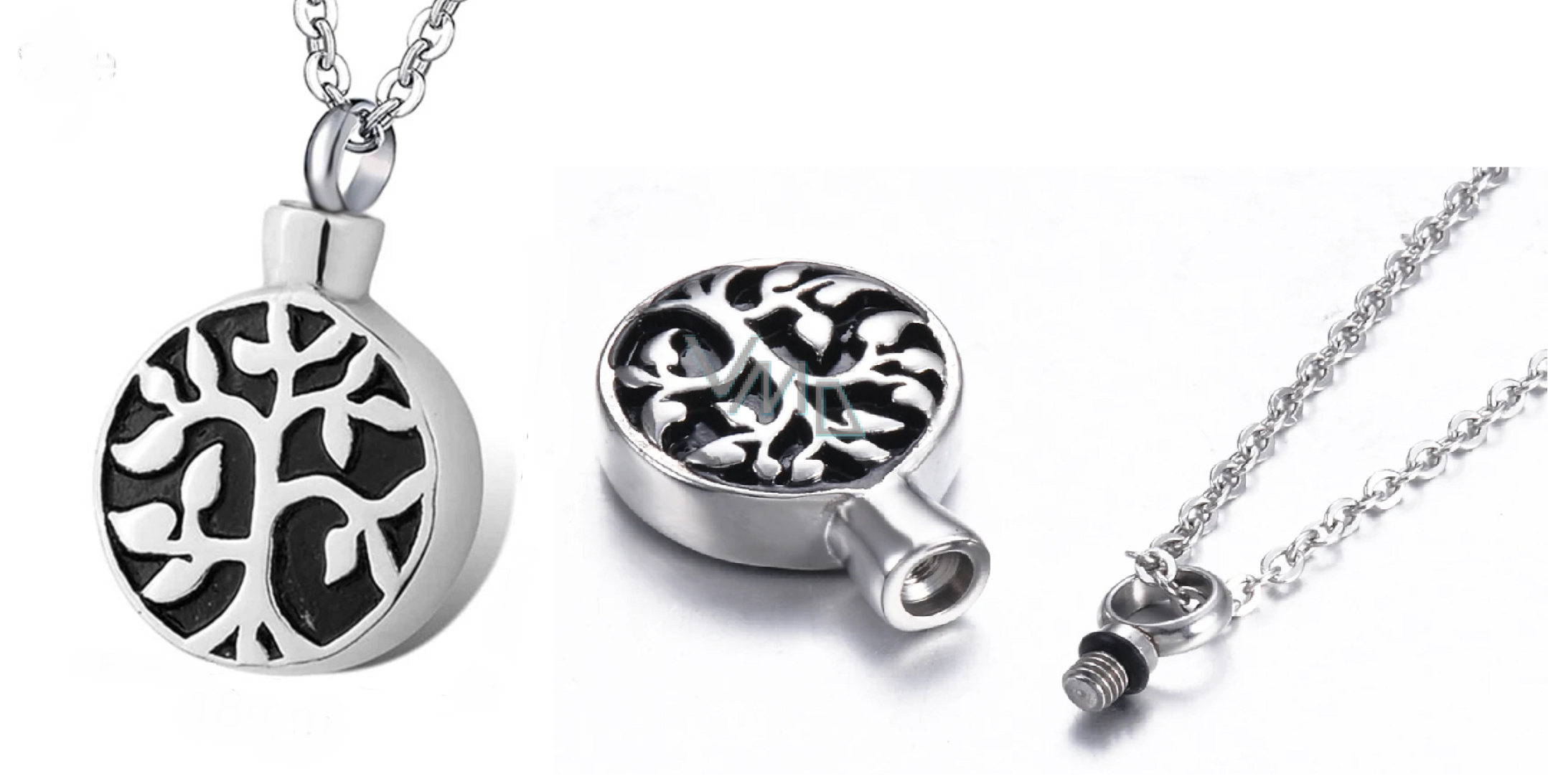 Pamětní, pietní urnový přívěsek, Strom života voděodolný, nerezová ocel 18 x 29 mm