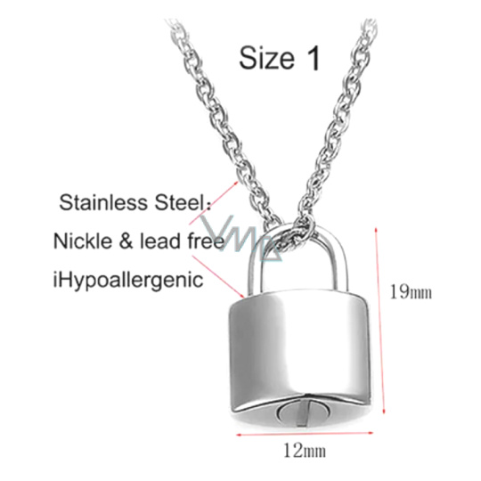 Pamětní, pietní urnový přívěsek, Zámek stříbrný voděodolný, nerezová ocel 12 x 19 cm
