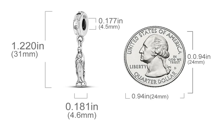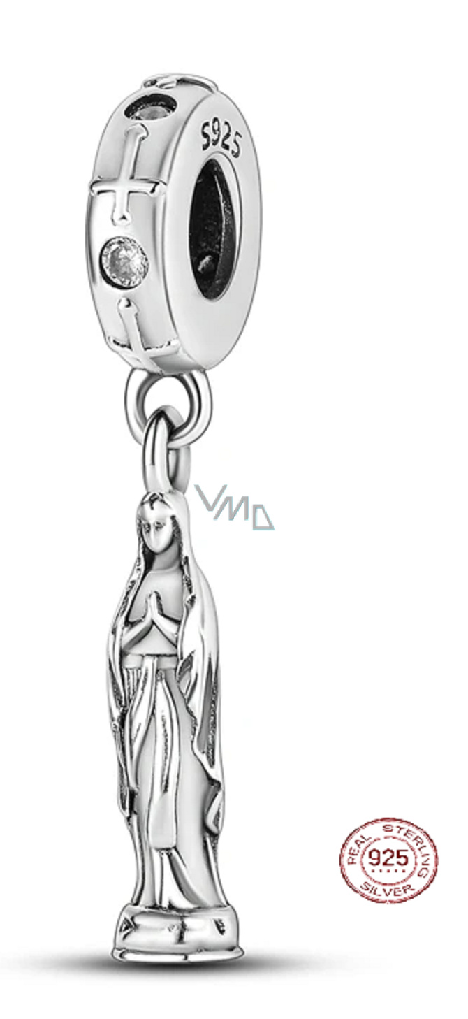 Charm Sterlingové stříbro 925 Náboženská kouzla Panna Marie Lurdská, přívěsek na náramek