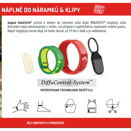Pro pokračující krycí účinek je možné kombinovat se sprejem nebo roll-onem PARAKITO. Náplně můžete dokoupit samostatně.