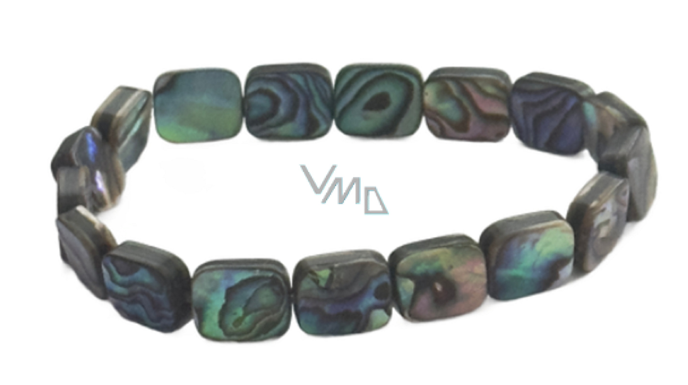 Paua mušle / Abalon s duhovou hrou barev náramek 11 x 9 mm / 16 - 17 cm, symbol ochrany a životní rovnováhy