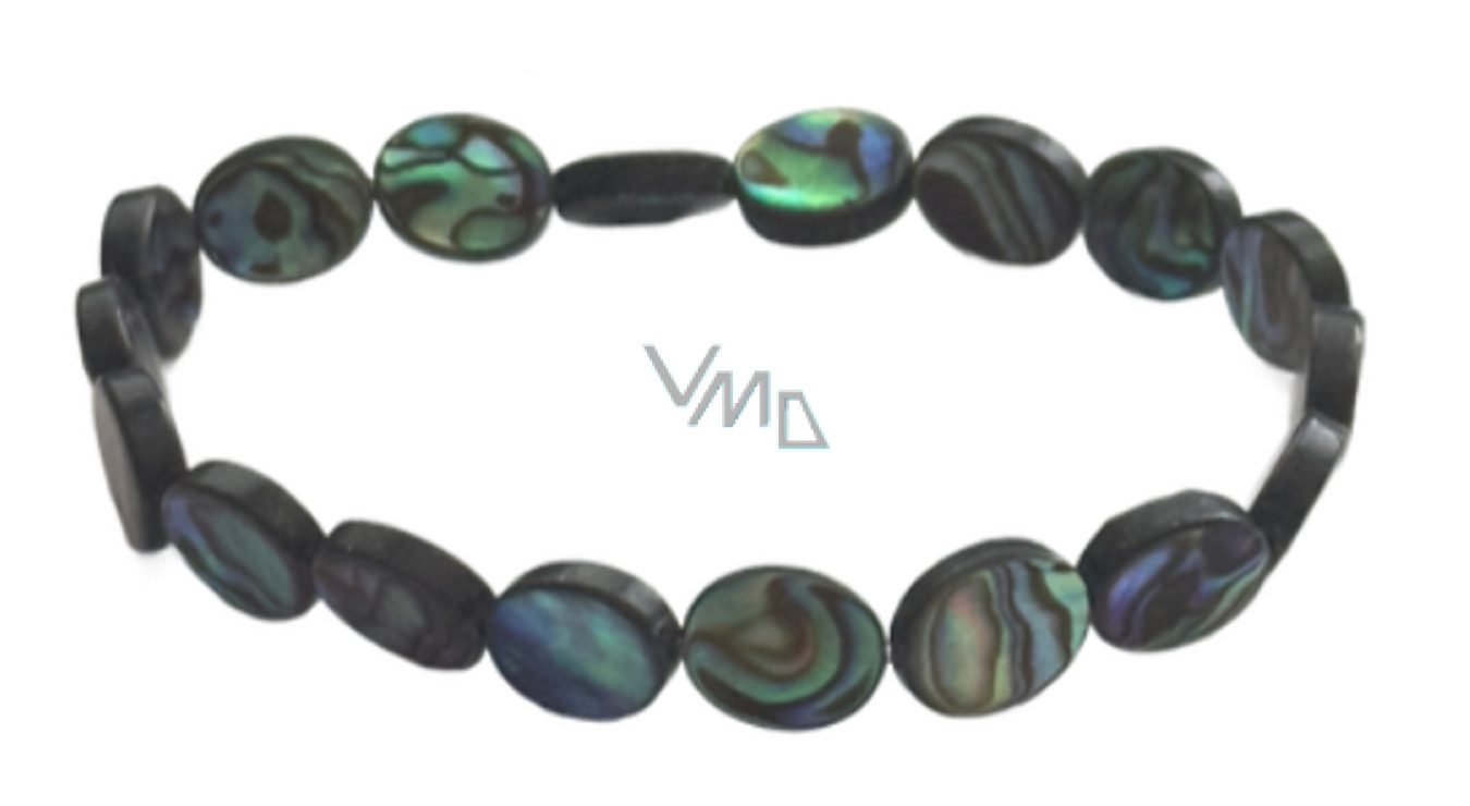 Paua mušle / Abalon s duhovou hrou barev náramek 8 x 10 mm / 16 - 17 cm, symbol ochrany a životní rovnováhy