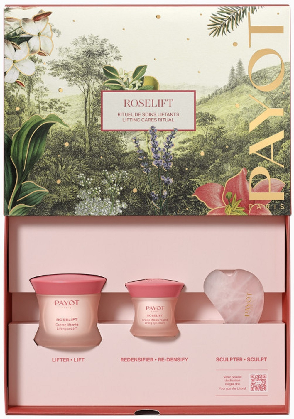 Payot Roselift Collagen Jour denní liftingový krém 50 ml + Roselift Collagen Regard oční liftingová péče 15 ml + Gua Sha růženín, kosmetická sada pro ženy