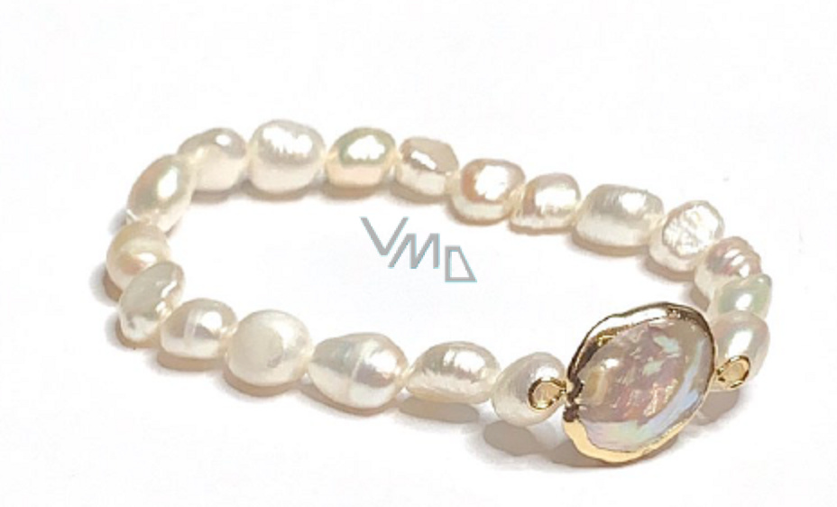 Perla říční bílá náramek elastický přírodní, 7 - 8 mm / 16 - 17 cm, symbol ženskosti, přináší obdiv