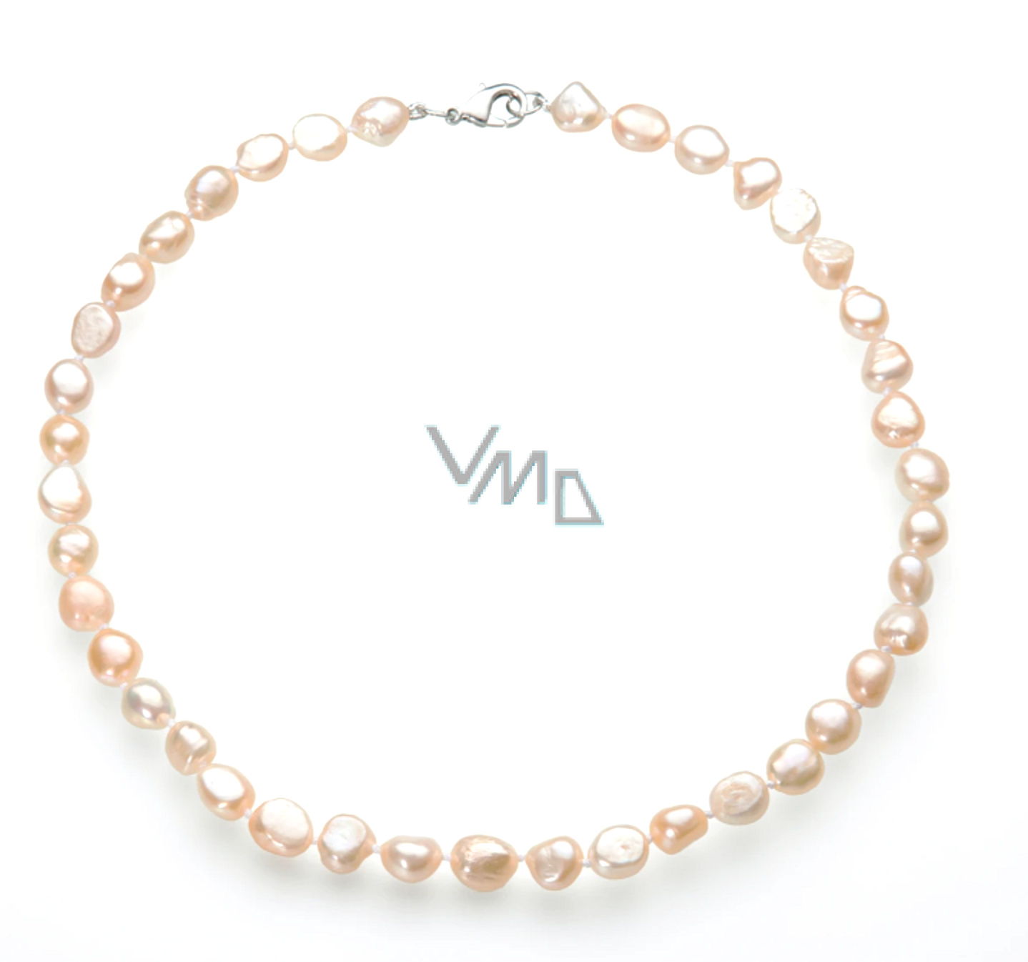 Perla říční meruňková říční nepravidelná náhrdelník přírodní, 47 cm, symbol ženskosti, přináší obdiv