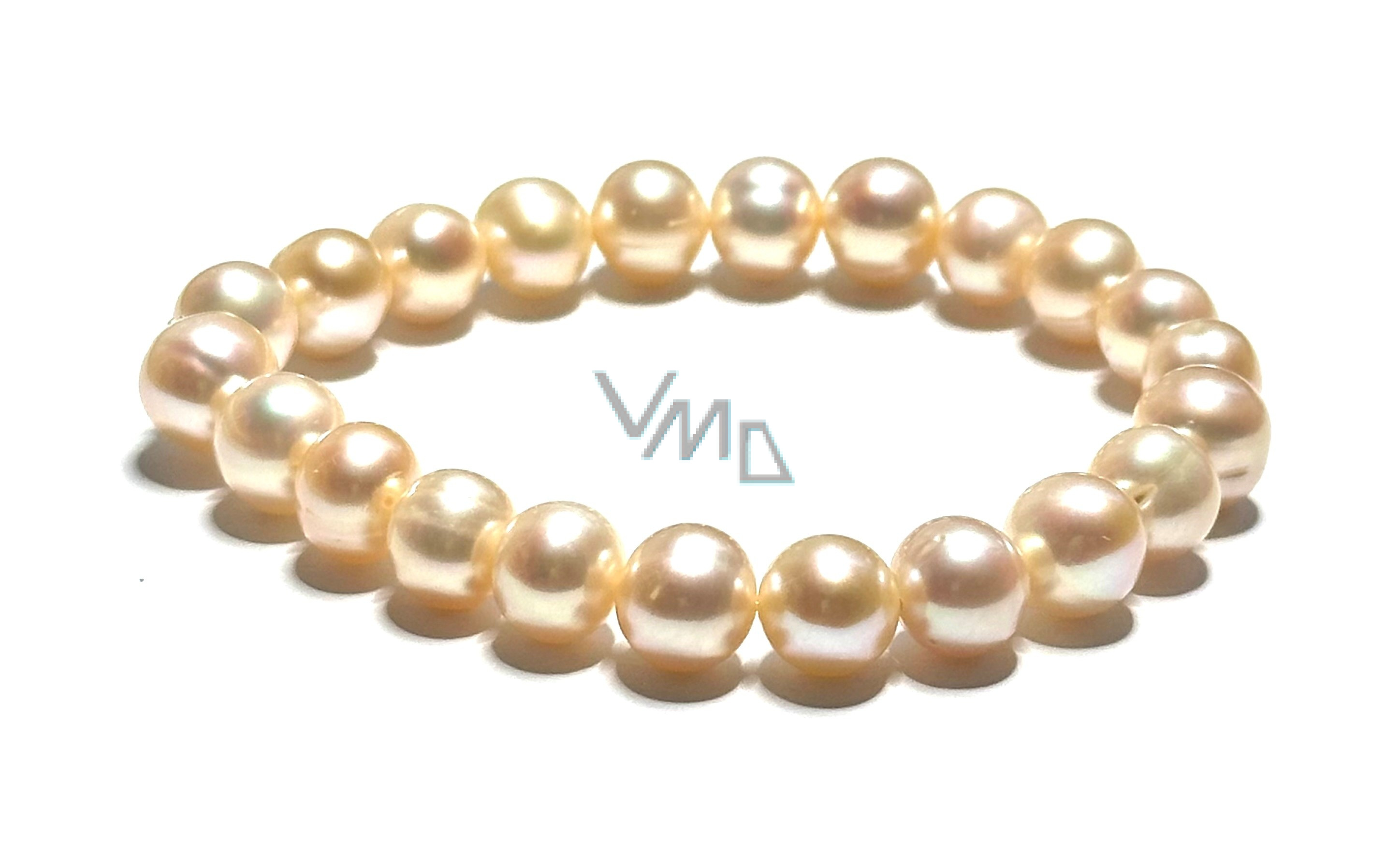 Perla říční meruňková náramek elastický přírodní, kulička 9 mm / 16 - 17 cm, symbol ženskosti, přináší obdiv
