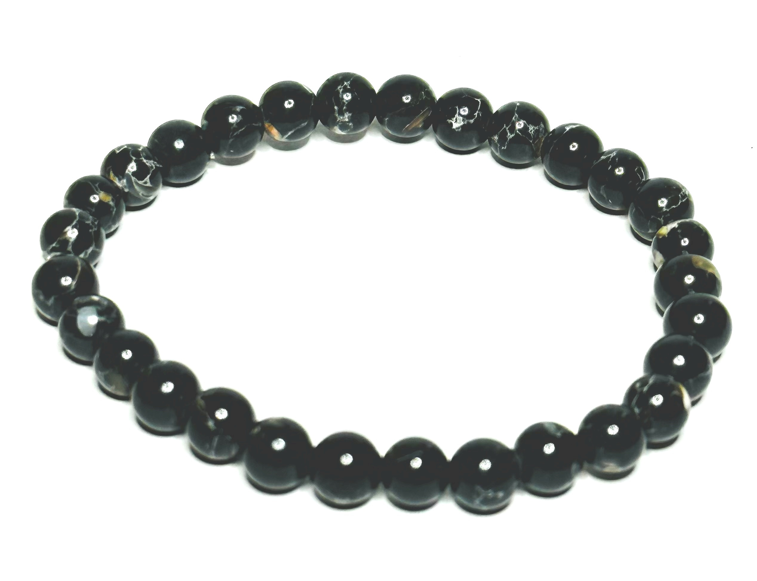 Perleť černá náramek elastický syntetický, kulička 6 mm / 16 - 17 cm, symbol ženskosti