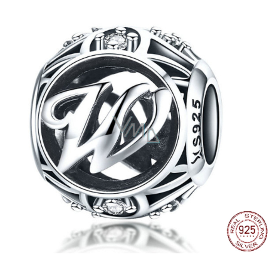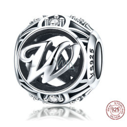 Charm Sterlingové stříbro 925 Kouzelná abeceda písmeno W + zirkony, korálek na náramek