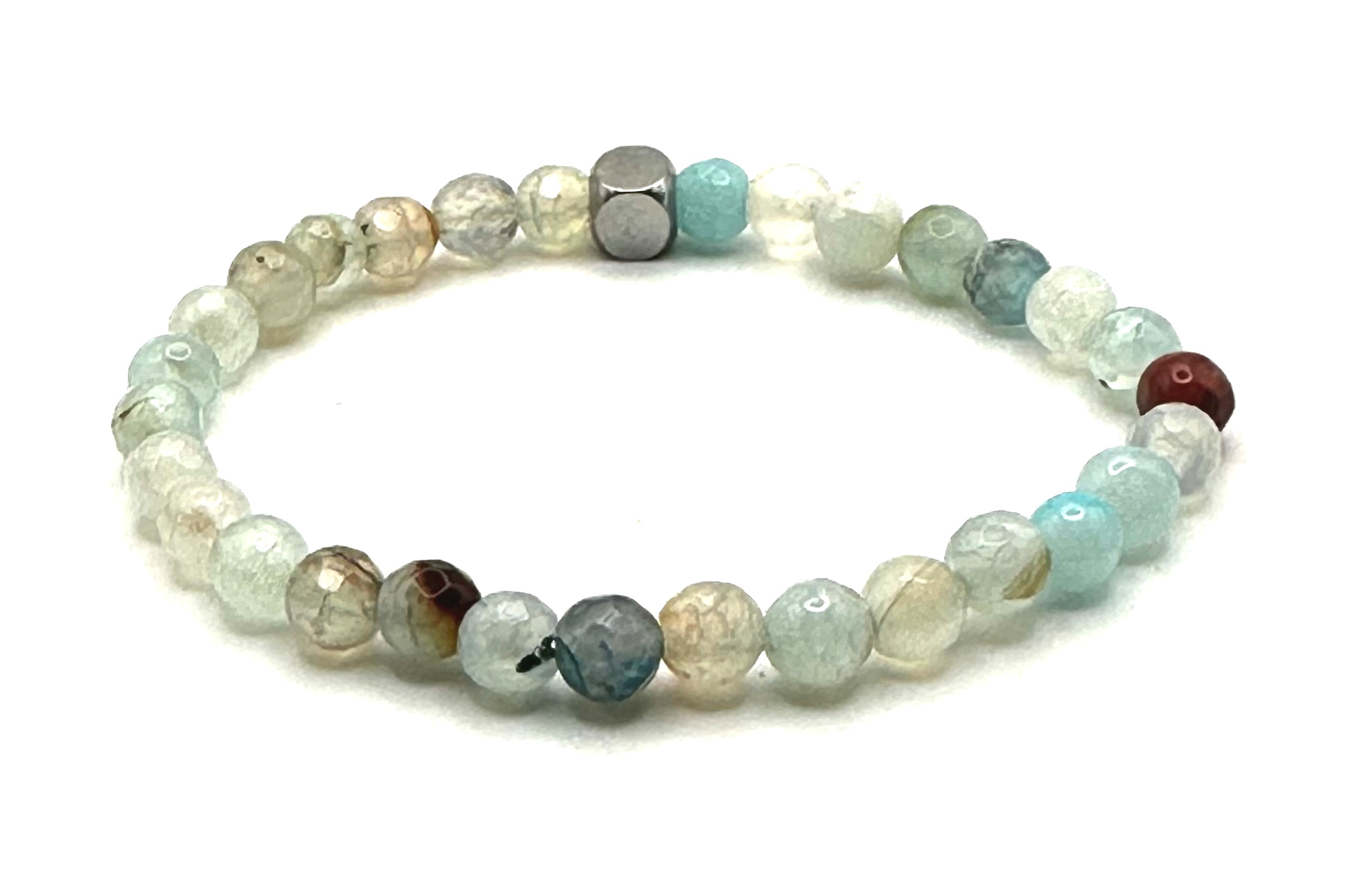 Achat jasnoniebieski fasetowany bransoletka elastyczna naturalny kamień, kuleczka 6 mm / 16 - 17 cm