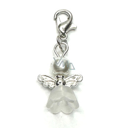 Anioł stróż zawieszka z białą spódnicą i perełką 14 x 19 mm 1 szt