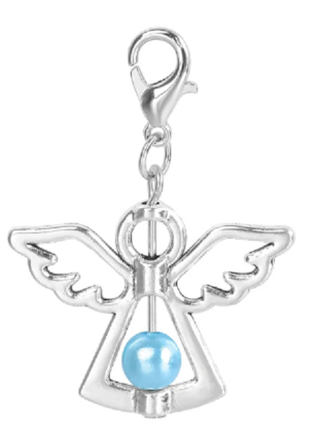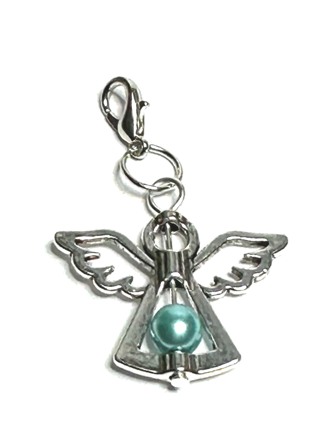 Anioł stróż zawieszka ze jasnoniebieską perłą 29 x 37 mm 1 sztuka