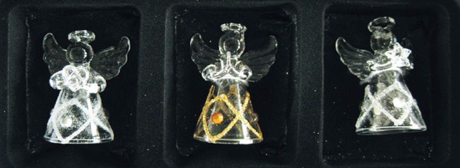 Andělé ze skla sada 3 kusy káro a kamínky, 4,5 cm