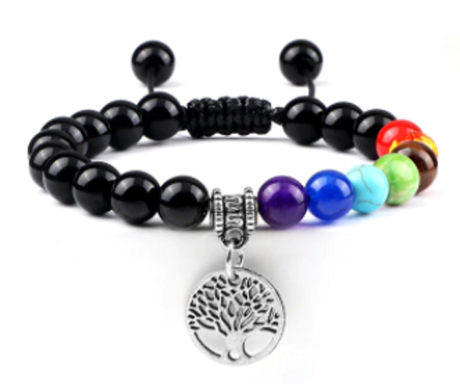 Bransoletka Chakra Drzewo Życia + Obsydian, kamień naturalny, ręcznie pleciona, regulowany rozmiar, koralik 8 mm, kamień ochrony