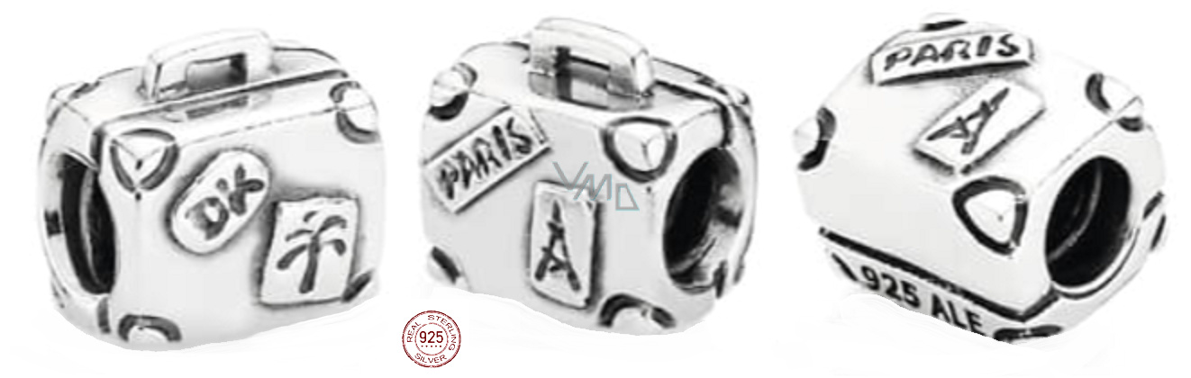 Charm Srebrny 925 Paris - walizka podróżna, koralik na bransoletkę podróżniczą