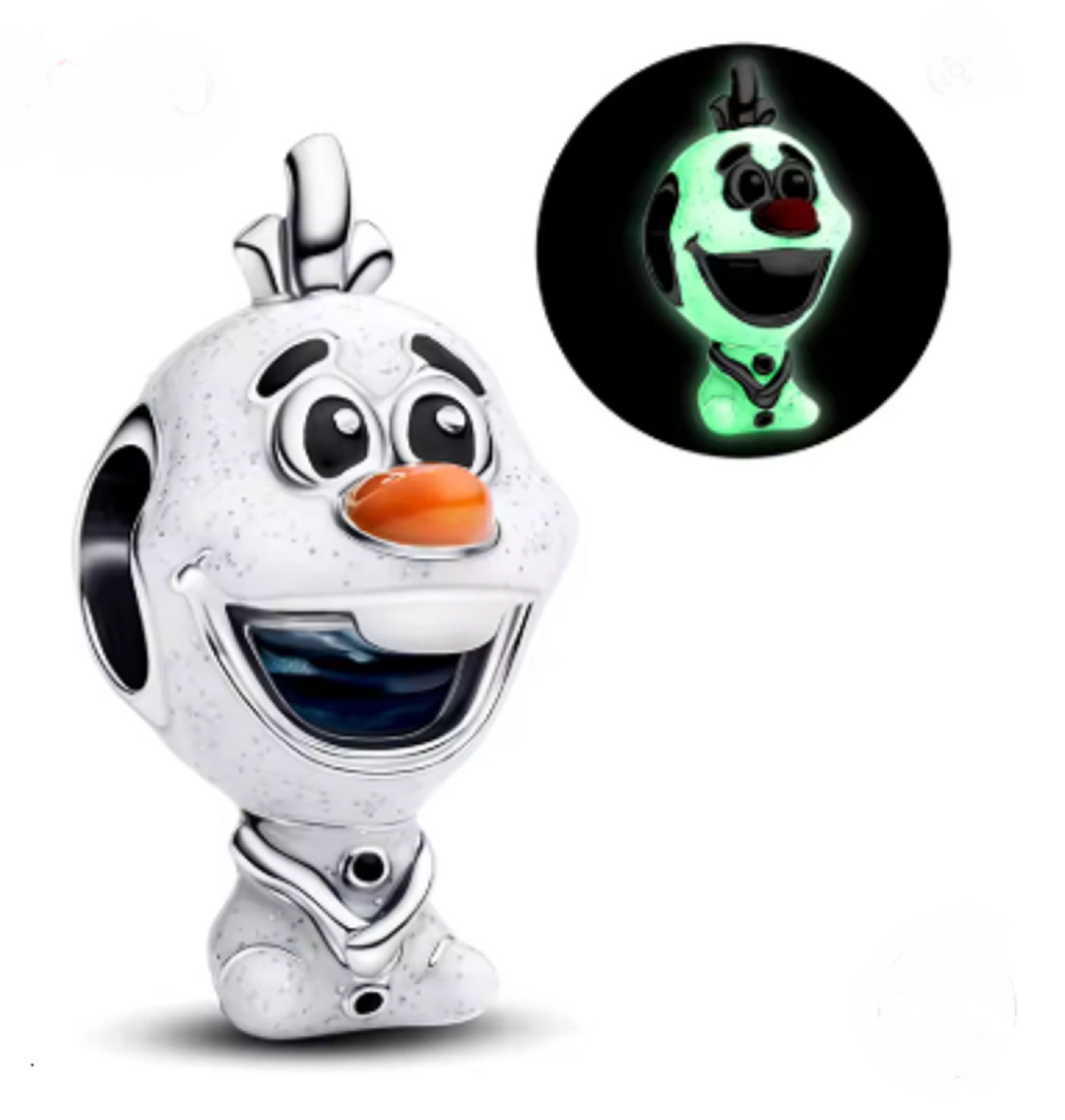 Rozkošný a věčně usměvavý Olaf svítí ve tmě z pohádky Ledové království přichází v podobě originálního přívěsku. Jeho bílý sněhový vzhled, oranžový nos z Mrkve a velký úsměv okamžitě přinesou radost a dobrou náladu.
