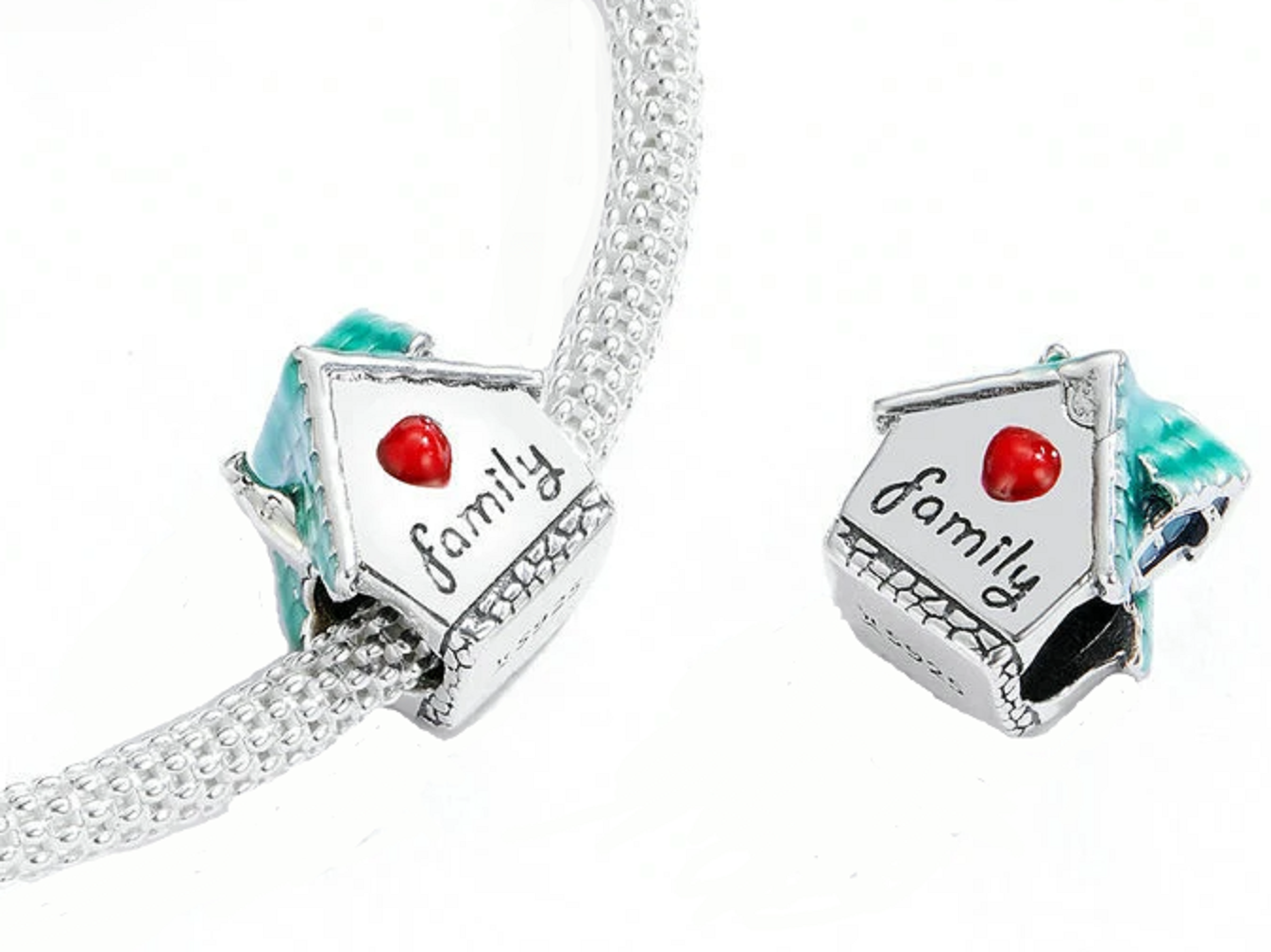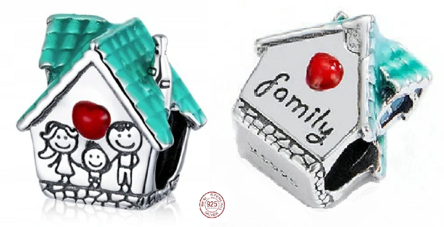 Zawieszka ze srebra próby 925 Dom, gdzie mieszka miłość, koralik do bransoletki rodzina