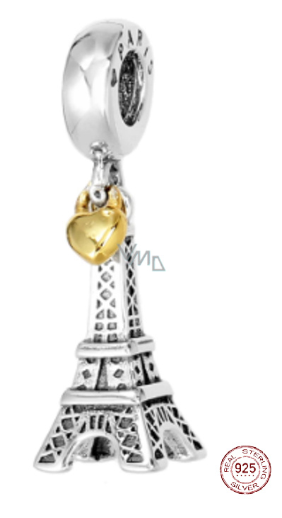 Charm Srebrna 925 Wieża Eiffla + serce miłości do Paryża, 2w1 zawieszka na bransoletkę podróżniczą