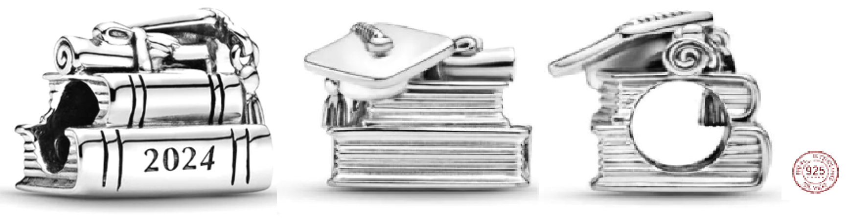 Zawieszka ze srebra próby 925 Graduacja - Promocja 2024, książka, zwoje, koralik do bransoletki